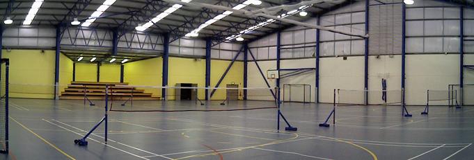 The indoor games hall can be divided into 6 badminton courts. Lighting during daytime is natrual sunlight. This can be a problem as the skylights appear to be too glaring when the sun is bright. On the other hand the lighting can fluctuate very rapidly if the are moving clouds.